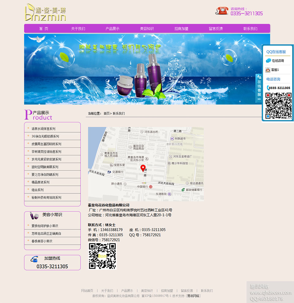 涵姿美琳化妆品有限公司,始创于1996年的广州涵姿美琳护肤研究中心,是一家集研发、生产、销售为一体的综合性企业,企业汇集了大批高素质的管理、生产 研发、营销人才,一直以来,涵资美琳特别注重科技在产品、美容院设备的研究、生产及应用过程中的积极作用,所用产品及设备在科技含量上遥遥领先于同行,品 质达到了苛刻的医学要求,亲肤性极强,无刺激无伤害、无任何副作用。
