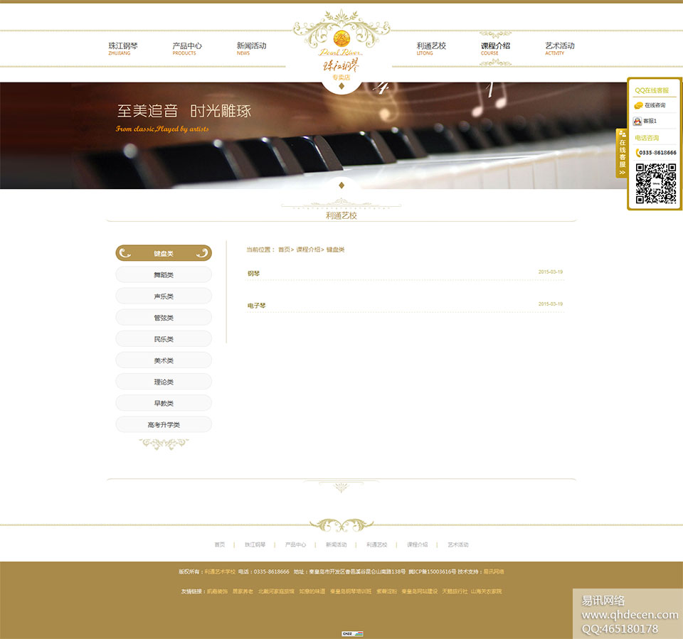 珠江钢琴专卖店:本琴行为秦皇岛利通艺校经营, 是集音乐教学与乐器销售、乐器售后维修为一体的综合性公司,为秦皇岛地区唯一珠江钢琴、英昌钢琴代理商,多年来秉承“诚信经营,只卖好质量乐器的理念”一直在为秦皇岛广大市民服务,店里乐器、配件种类繁多,价格合理。主营珠江钢琴——“凯撒堡KA艺术家演奏琴”及英昌钢琴。